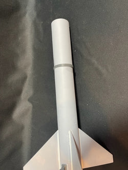 The design is capable of flying to altitudes over 700 feet on an Aerotech F39-4T motor. The kit is designed for single stage flight, but advanced modelers will be able to convert it to two or three stage flight without much problem.