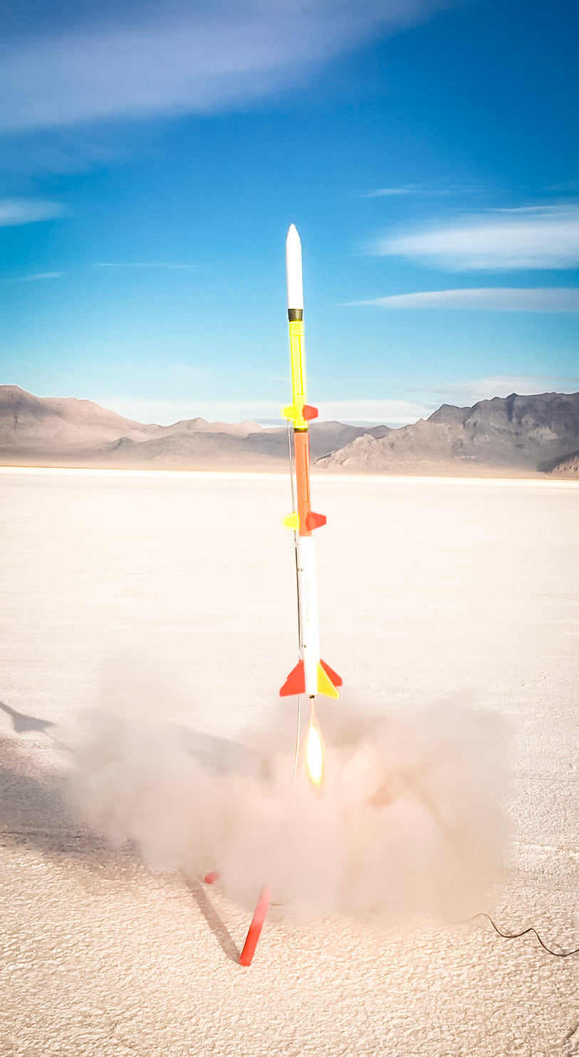 The model is capable of flying to altitudes over 1,400 feet on an Aerotech G80-7T motor. The kit is designed for single stage flight, but advanced modelers will be able to convert it to two or three stage flight without much problem.