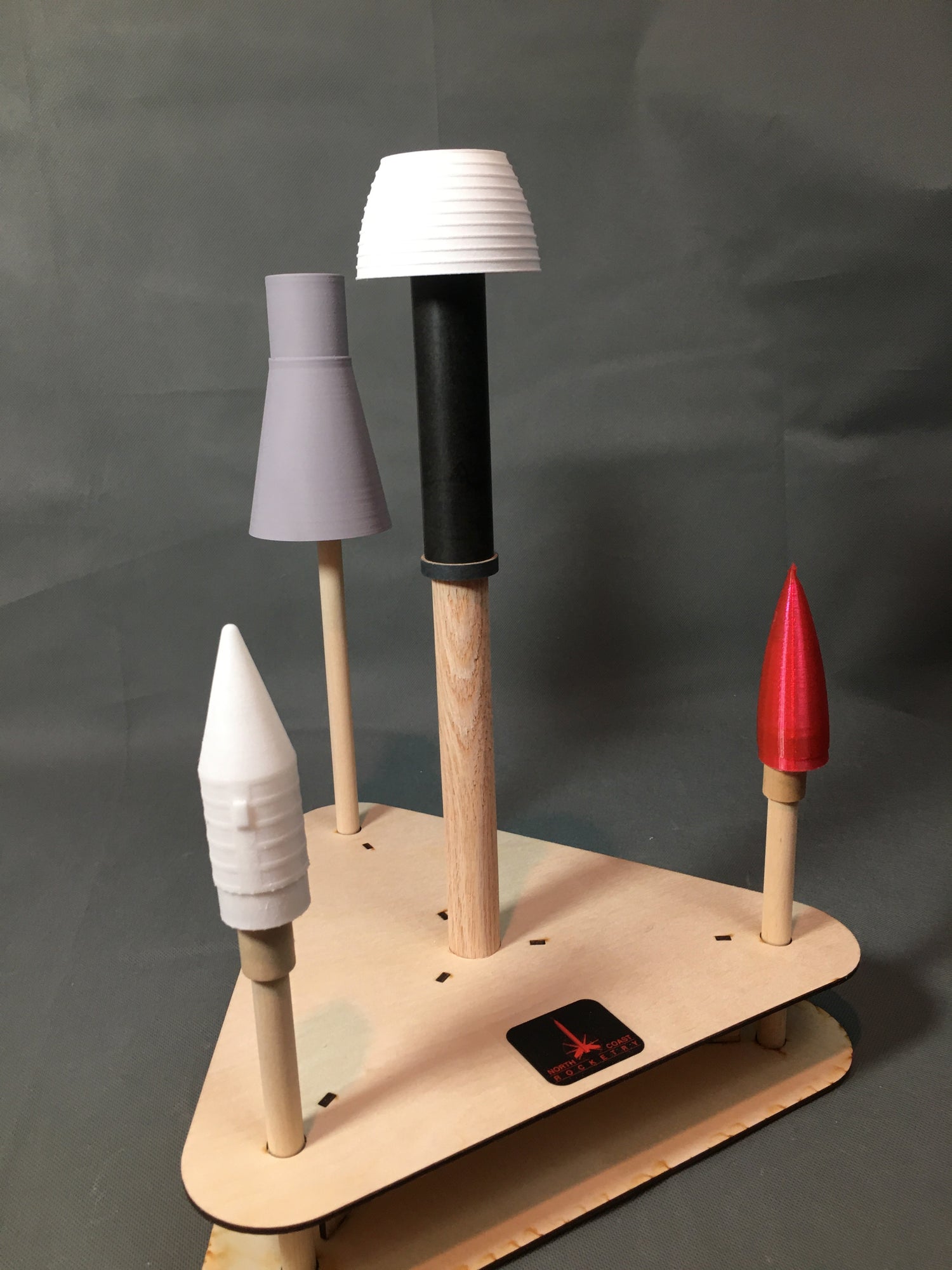For years, I have been using a variety of aides for painting and holding model rockets during assembly. Finally, I realized I could do a little laser cut jig that would make things much easier.