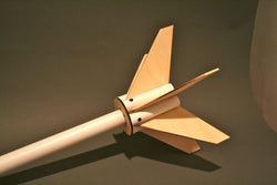 The kit features laser-cut plywood fins, colorful detailed self adhesive decals, plywood centering rings, an easy-to-finish plastic nose cone, and the heavy duty Gorilla