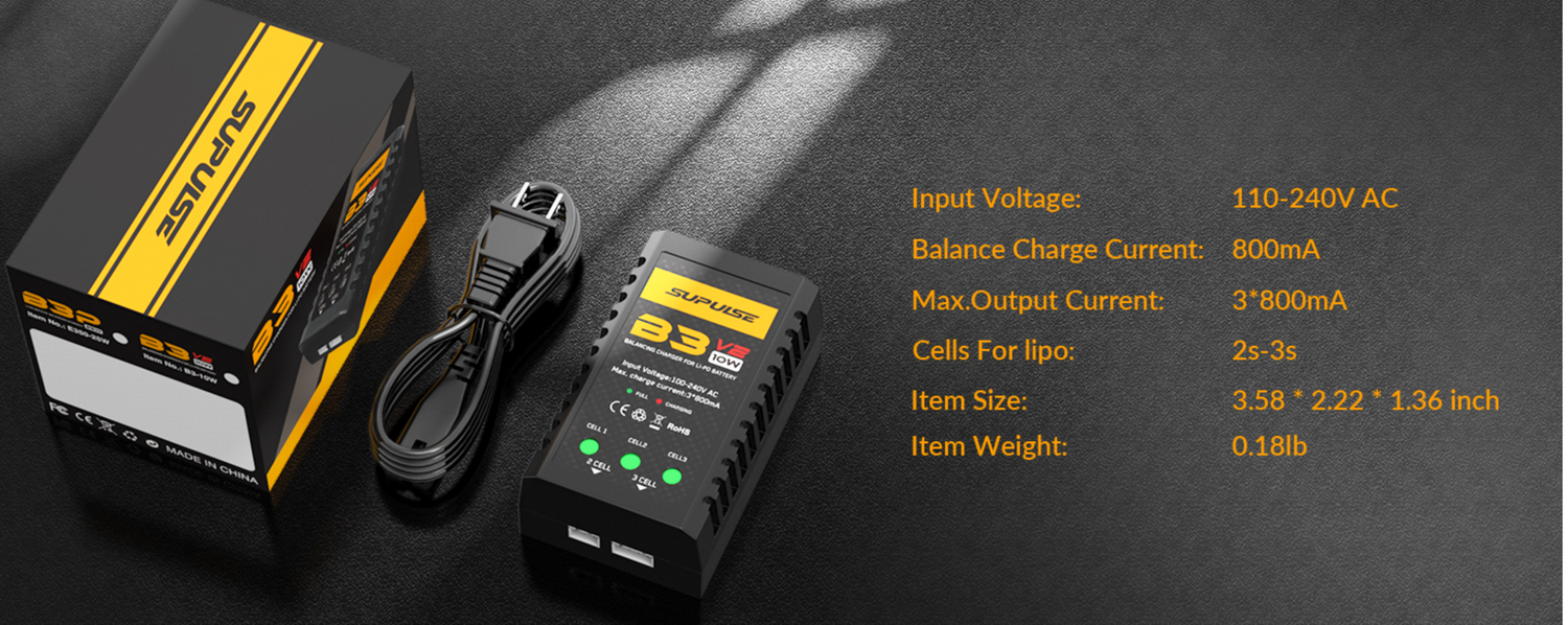 - [Convenient & Useful]This Supulse lipo charger is compact and light, especially there is separated corresponding balance port for each battery pack.