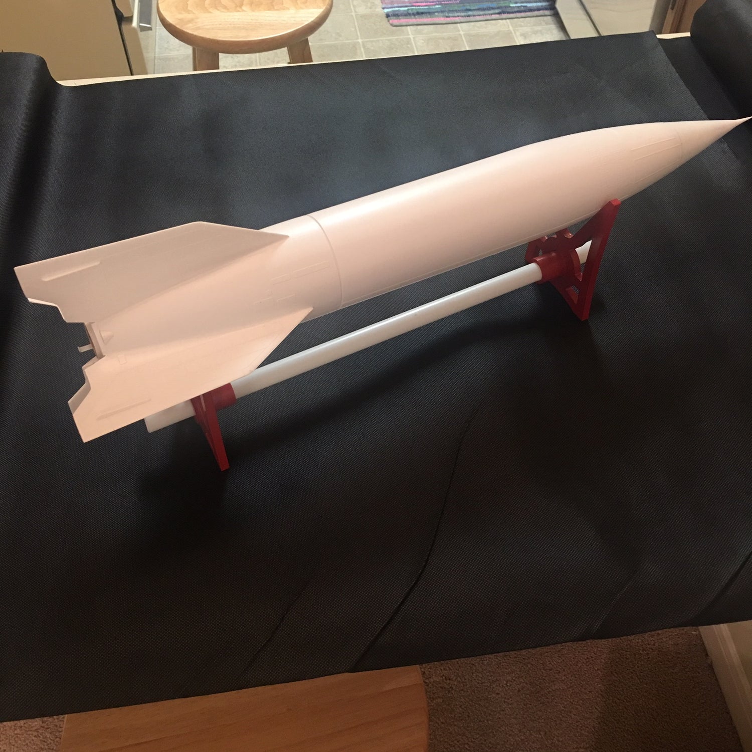 For years, I always wanted a horizontal work stand for my F & G powered models. After getting some requests for North Coast Rocketry to produce a kit for others to use, Dave Meyers and I developed the X-Stand™ kit. By using 3D printed bushings, we were able to offer an elegant work stand for your workbench!